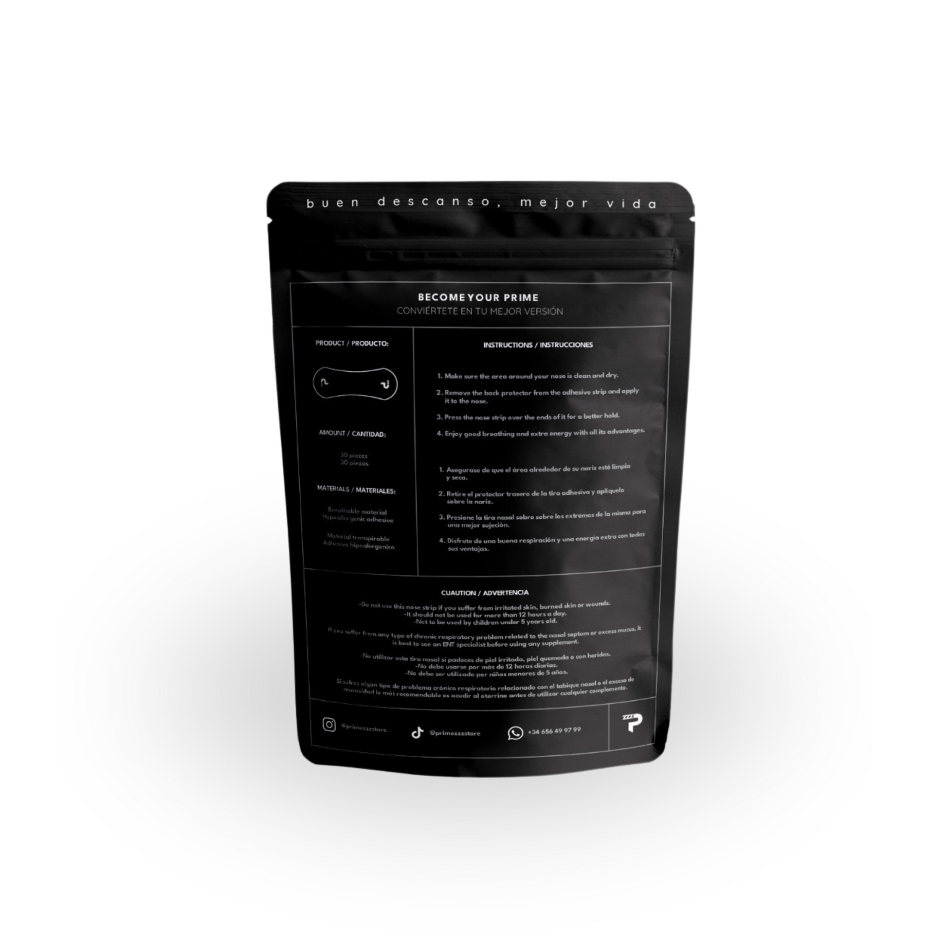 Las tiras nasales PrimeZzz favorecen una respiración nasal continua durante el descanso, ayudando a crear las condiciones para un sueño más profundo y reparador. Combinadas con una cinta bucal, promueven la respiración por la nariz durante la noche, mejorando la recuperación y la sensación de descanso al despertar. Al estabilizar la respiración sin afectar la comodidad, convierten la respiración nocturna en una aliada silenciosa del rendimiento diario.